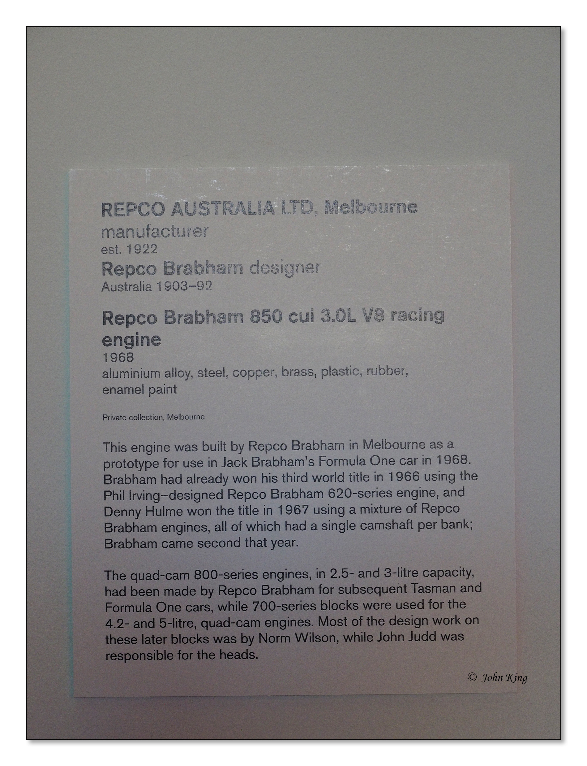 Repco Brabham 3.0L quad cam V8 racing engine